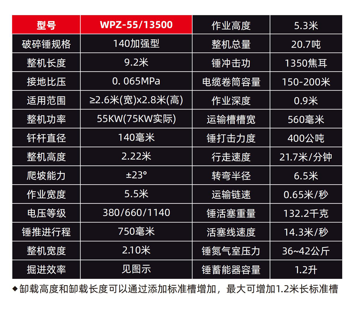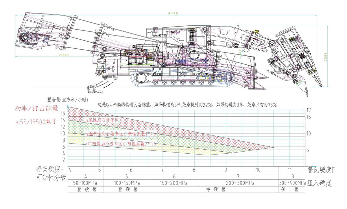 最高可以对220Mpa的岩石(火山岩)进行掘进