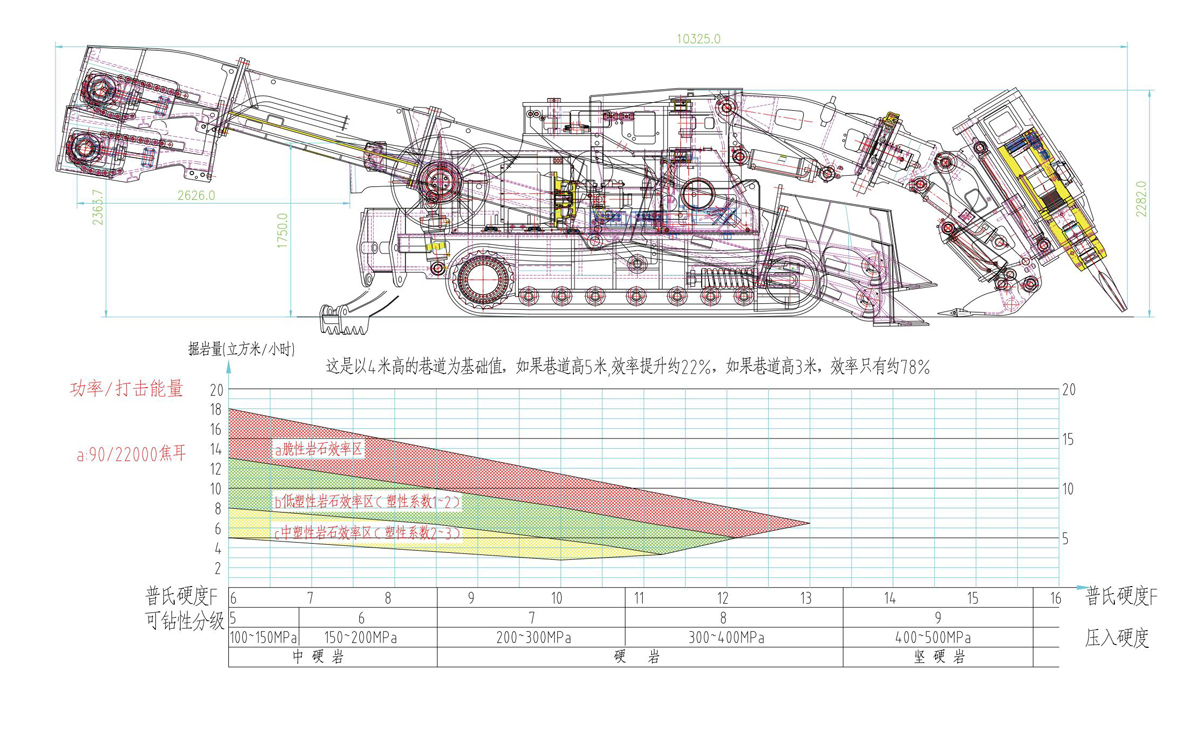 最高可以对220Mpa的岩石(火山岩)进行掘进